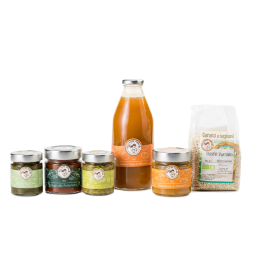 Questa confezione prende il nome da Matteo e da Anita, un ragazzo fragile e una educatrice che condividono la giornata di lavoro presso il laboratorio La Pietra Scartata, della Cooperativa Sociale La Fraternità, luogo in cui vengono realizzati a marchio La Madre Terra i prodotti contenuti nella confezione salvo dove diversamente indicato.