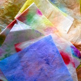 Il processo artistico prevede di bagnare i fogli di carta di riso, su cui poi i ragazzi e le ragazze del centro dispongono a piacimento dei pezzetti di carta velina colorata, scegliendo autonomamente i colori che più amano o li attirano. Il foglio di carta di riso viene ripiegato su sé stesso e con le loro mani i ragazzi iniziano ad “accarezzare” la carta, secondo la manualità e l’intenzione di ciascuno di loro. Questo passaggio fa sì che i fogli di carta velina racchiusi all’interno della carta di riso si spostino, si mescolino tra loro, dando vita ogni volta a disegni unici e irripetibili.